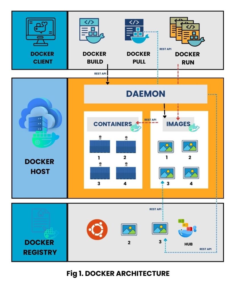 Docker Engine: It is the underlying client or server application that manages Docker. It consists of Docker Daemon, Docker API and a command-line interface (CLI).